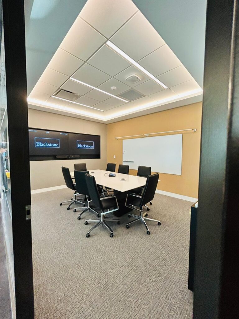 For Blackstone, Dabcon delivered premium interior construction services including drywall partitions, drywall ceilings, and acoustical ceiling tile systems. The work was completed with high-end finish standards and precise detailing throughout. Our scope contributed to a modern corporate environment focused on comfort, sound control, and architectural refinement. This project represents Dabcon’s expertise in elite office interior build-outs.
