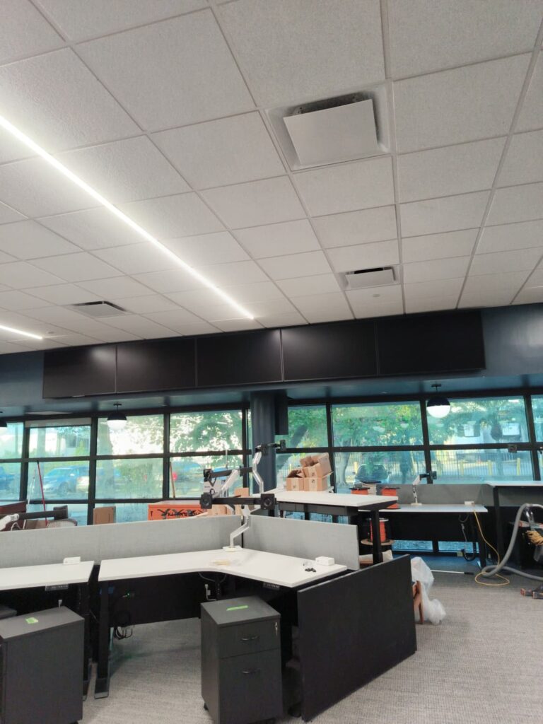 Dabcon completed drywall partitions and acoustical ceiling tile (ACT) installations. The scope required precise coordination to support a functional and professional office layout. Our team ensured clean finishes and optimal acoustic performance throughout the space. The completed environment reflects modern corporate standards with enhanced comfort and durability.